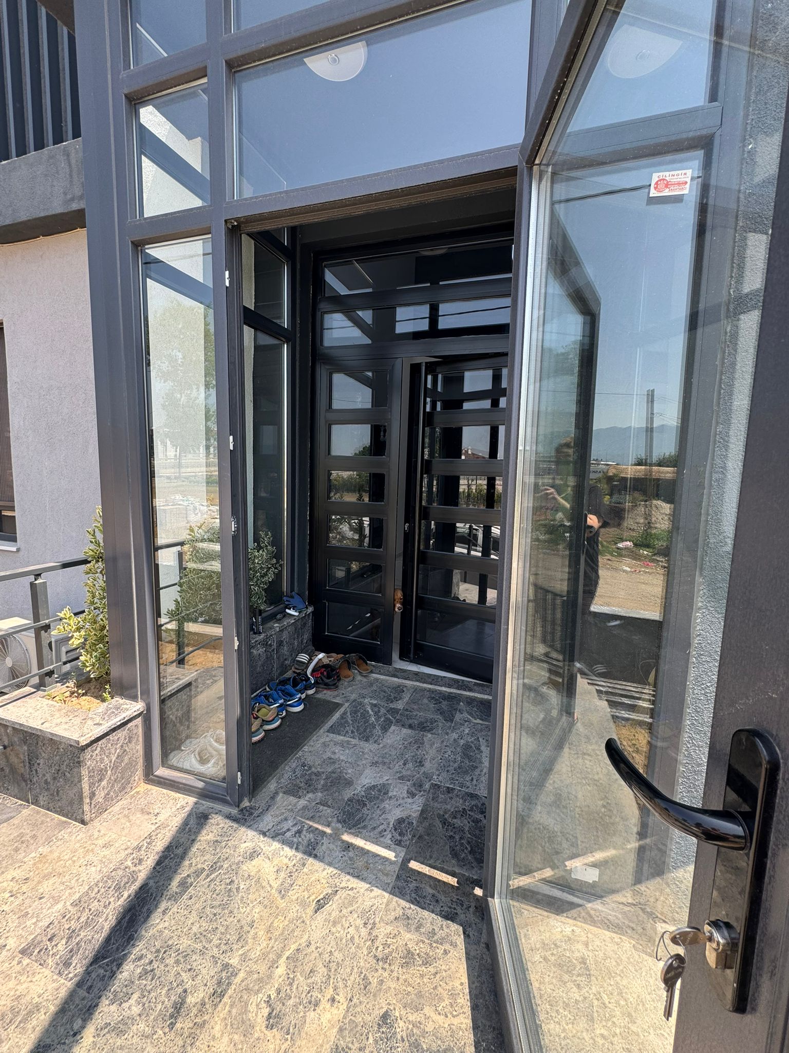 Otomatik panjurlu, çift yönlü giriş